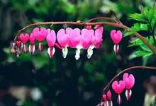 荷包牡丹 Fukuhara),是罂粟科荷包牡丹属的多年生草本植物,株高30-60厘米,具肉质根状茎;茎直立呈圆柱形;叶二回三出全裂,状似牡丹叶;总状花序顶生,基部为心形,花瓣紫红色至粉红色,稀白色,…全部>>