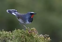 黑胸歌鸲是鹟科、歌鸲属小型鸟类,体长13-16厘米。上体石板灰褐色或橄榄褐色,头和颈侧黑色,眉纹和颧纹白色,在暗色的头部极为醒目。两翅和尾黑褐色,外侧尾羽具白色端斑。下体颏、喉雄鸟深红色,雌鸟白色。…全部>>