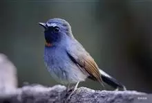 棕胸蓝姬鹟:属小型鸣禽,体长10-13厘米,体重6-10克,是一种体型很小的灰蓝及棕色鹟,雌雄羽色不同,雄鸟羽色艳丽,雌鸟羽色暗淡。雄鸟上体深蓝色,胸橙黄色,下腹灰白色。亚成鸟具褐色斑驳。…全部>>