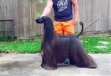 阿富汗猎犬全身披丝绢状的长毛,毛色鲜艳,呈多种颜色,背中线附近毛短,耳朵、四肢及尾长有大量饰毛;头部有典型的长且富有光泽的冠毛,吻部长而尖,鼻端呈黑色,杏仁眼,有时呈三角形,…全部>>
