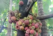 聚果榕是桑科榕属植物,乔木,高达25-30米,胸径60-90厘米,树皮灰褐色。叶薄革质,椭圆状倒卵形至椭圆形或长椭圆形,长10-14厘米,宽3.5-4.5厘米。榕果聚生于老茎瘤状短枝上,…全部>>