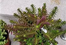 茜之塔 Toelken)是景天科青锁龙属多年生肉质草本植物。茜之塔叶交互对生,紧密排列,三角形,绿色,冬季叶转变呈红色;花小,白色;花期秋季。茜之塔因其整齐层叠的紫红色叶片让人想到红色佛塔,故名。…全部>>