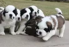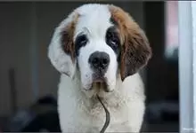 圣伯纳犬,别名巴里汉德,属于大型工作犬,肩高约65~90厘米,体重约50~90千克。圣伯纳犬身体强壮,被毛红褐色和白色相间,头圆而宽大。颈部强壮,胸宽深,背直。前肢长直,腕关节略前倾,后肢腿骨粗壮,…全部>>