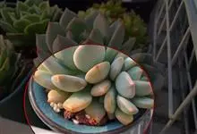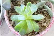 阿尔巴白月影是景天科、拟石莲花属的多年生植物、多肉植物,植株小型,叶片在阳光充足且具一定温差的适宜环境下呈通透的白色。在园艺育种中是优秀的亲本。全部>>