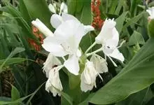 姜花又名野姜花。是姜科姜花属的多年生草本植物,茎高1-2米;叶片长圆状披针形或披针形,叶面光滑,叶背被短柔毛;穗状花序顶生,椭圆形,花芬芳,白色;蒴果卵状三棱形,微黄绿色;种子鲜红色,具橘红色的假种皮。…全部>>