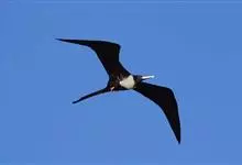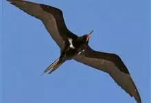 军舰鸟是鹈形目军舰鸟科军舰鸟属鸟类的通称,又称军人鸟。身体较小,腿又短又细,长有钩状嘴;翅膀细长,有很长的叉形尾巴。雄鸟体羽全黑,雌鸟大多数背部、头部和腹部为略带黑色的褐色,而胸部和腋距为白色。…全部>>
