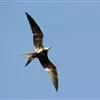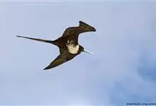 军舰鸟是鹈形目军舰鸟科军舰鸟属鸟类的通称,又称军人鸟。身体较小,腿又短又细,长有钩状嘴;翅膀细长,有很长的叉形尾巴。雄鸟体羽全黑,雌鸟大多数背部、头部和腹部为略带黑色的褐色,而胸部和腋距为白色。…全部>>