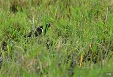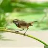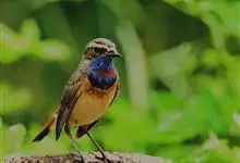 蓝点颏亦称“蓝喉歌鸲”,通称蓝靛颏儿。身体大小和麻雀相似,体长12-13厘米,体重17-18克。头部、上体主要为土褐色。眉纹白色。尾羽黑褐色,基部栗红色。颏部、喉部辉蓝色,下面有黑色横纹。下体白色。…全部>>