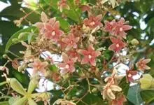 假苹婆是锦葵科苹婆属乔木植物。幼枝被毛;叶椭圆形或披针形,先端骤尖,基部钝或近圆无毛;圆锥花序腋生,花淡红色;蓇葖果鲜红色,长卵圆形或长椭圆形;种子卵圆形黑褐色;花期4-6月。…全部>>