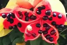 假苹婆是锦葵科苹婆属乔木植物。幼枝被毛;叶椭圆形或披针形,先端骤尖,基部钝或近圆无毛;圆锥花序腋生,花淡红色;蓇葖果鲜红色,长卵圆形或长椭圆形;种子卵圆形黑褐色;花期4-6月。…全部>>
