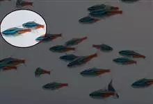 红绿灯鱼(红绿魮脂鲤、红绿灯鱼)鲤形目 > 脂鲤科 > 霓虹脂鲤属 > 红绿灯鱼