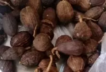 草果,别名红草果,是姜科豆蔻属多年生草本植物。草果茎丛生,高达3米,全株有辛香气,地下部分略似生姜;叶片为长椭圆形或狭长圆形,长40~70厘米,宽10~20厘米,两面光滑无毛,…全部>>