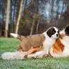 圣伯纳犬,别名巴里汉德,属于大型工作犬,肩高约65~90厘米,体重约50~90千克。圣伯纳犬身体强壮,被毛红褐色和白色相间,头圆而宽大。颈部强壮,胸宽深,背直。前肢长直,腕关节略前倾,后肢腿骨粗壮,…全部>>