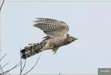 燕隼:是隼科、隼属的鸟类。体长约36厘米,体重140-340克。体形比猎隼、游隼等都小,为小型猛禽,雌鸟比雄鸟稍大;头部和颈后主要为灰黑色,颈后有一乳白色领斑;上体其余部分羽毛灰色,尾部稍淡,…全部>>