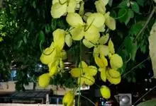 腊肠树:是豆科腊肠树属植物。落叶乔木,高可达15米;枝细长;树皮灰色,老时粗糙,暗褐色。叶长30-40厘米,小叶对生,薄革质,阔卵形,卵形或长圆形,边全缘,幼嫩时两面被微柔毛,老时无毛;叶脉纤细,…全部>>