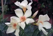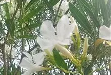 白花夹竹桃是夹竹桃科、夹竹桃属植物夹竹桃的栽培品种。常绿直立大灌木,枝条灰绿色;嫩枝条具稜,被微毛,老时毛脱落。叶3-4枚轮生,下枝为对生,叶面深绿,叶背浅绿色;侧脉纤细平行与中脉成直角;叶柄扁平,…全部>>