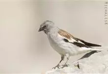 白斑翅雪雀:属典型的高原鸟类,共有7个亚种,体重30-34克,体长142-169毫米,较雪雀属中其他种体型稍大;雄鸟头灰,颏黑,翕和肩富于褐色;翼大部白色;除一对中央尾羽黑色外其余均为白色而具黑色羽端,…全部>>