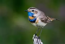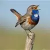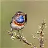 蓝点颏亦称“蓝喉歌鸲”,通称蓝靛颏儿。身体大小和麻雀相似,体长12-13厘米,体重17-18克。头部、上体主要为土褐色。眉纹白色。尾羽黑褐色,基部栗红色。颏部、喉部辉蓝色,下面有黑色横纹。下体白色。…全部>>