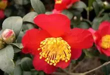 山茶,别名洋茶、茶花、晚山茶等,为山茶科山茶属的一种灌木或小乔木植物。其叶革质,椭圆形,无毛,下面浅绿色,无毛,叶柄无毛;花顶生,红色,无柄;花瓣6-7片,外侧2片近圆形,离生,被毛,…全部>>