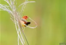 橙颊梅花雀体长约10厘米,头部灰色,两侧有大块橙色区域,嘴基及眼下方有黑纹,两条黑纹间呈白色,颊部有橙红色块斑,喙为红色至橙红色,背部及翼为褐色,腰为鲜红色,身体腹面淡灰色,腹部白色至皮黄色,…全部>>