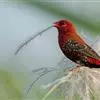 红梅花雀小型鸟类,体长9-10厘米。雄鸟通体朱红色,背、肩、胸等满布白色小斑点,两翅和尾黑褐色均具白色端斑,嘴红色,脚蜡黄色。雌鸟上体淡褐色或赭褐色,翅上中覆羽、大覆羽和内侧飞羽末端具白色斑点,…全部>>