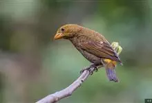 血雀雀科朱雀属鸟类,体重36-49克;体长155-182毫米。雄鸟除眼先、翼与尾为黑色外,通体为鲜红色;嘴鲜黄;雌鸟暗橄榄绿色,羽端较淡或带黄色;腰鲜黄;嘴较暗。虹膜褐色;嘴黄色;腿和脚褐色。…全部>>