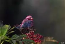 藏朱雀:全长约17-18厘米。雄鸟头部深红色具光辉,喉部暗红色具白色点斑;背部灰白色,各羽具玫瑰红色羽端,形成许多斑纹;腰部淡玫瑰红色;翅暗褐色,沾灰白,羽端沾玫瑰红或灰白色;尾暗棕色,端缘玫瑰红色…全部>>