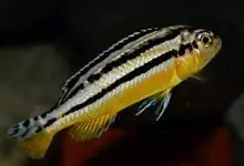 非洲凤凰是最早从马拉维湖出口的慈鲷之一。体长约15厘米,捕食性鱼类。幼鱼为鲜黄色,身体上半部分两条黑色条纹从吻延伸到尾鳍。 背鳍上也有一条黑色条纹。成年以后的雌鱼依然保持着这种体色,…全部>>
