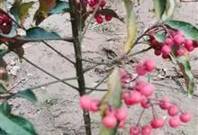 朱砂根是报春花科紫金牛属植物,又名铁凉伞、红铜盘、百两金、大罗伞、开喉箭等,为常绿小灌木,高1~2米,茎粗壮,无毛,除侧生特殊花枝外,无分枝,叶片革质或坚纸质,椭圆形、椭圆状披针形至倒披针形,…全部>>