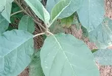 假烟叶树是茄科、茄属植物。小乔木,高1.5-10米,小枝密被白色具柄头状簇绒毛。叶大而厚,卵状长圆形,长10-29厘米,宽4-12厘米,先端短渐尖,基部阔楔形或钝,叶柄粗壮,长约1.5 -5.5厘米,…全部>>