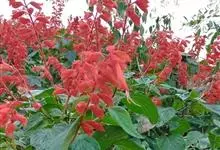 一串红,又称爆仗红、象牙红,为唇形科鼠尾草属植物。花序修长,色红鲜艳,花期又长,适应性强,为中国城市和园林中最普遍栽培的草本花卉。原产巴西、南美洲。喜温暖和阳光充足环境。不耐寒,耐半阴,忌霜雪和高温,…全部>>