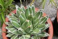 金边龙舌兰是天门冬科龙舌兰属多年生常绿草本植物。叶丛生边缘有黄白色条带镶边,有紫褐色刺状锯齿;圆锥花序黄绿色,花药丁字形着生;蒴果长椭圆形;种子扁平黑色。10年开花,结实后即枯死。…全部>>