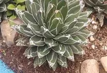 皇后龙舌兰是天门冬科、龙舌兰属多年生草本多浆植物。无主茎,叶丛生,莲座状,株幅40厘米。叶较多,先端较细,三棱形,腹面扁平,背面圆形呈微龙骨凸起,长10-30厘米,宽2.5-7.5厘米,厚肉质硬,…全部>>