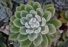 芙蓉雪莲是景天科拟石莲花属的植物。由于叶片表面覆盖着一层厚霜粉,通常呈现出白色;日照增多,温差增大后叶缘、叶尖会呈现出粉红色或橙红色。…全部>>