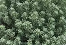 薄雪万年草别名矶小松,景天科景天属多年生草本植物,其细小的蓝绿色棒状叶片环绕生长于茎端,茎匍匐生长接触地面易着生不定根,整片生长郁郁葱葱犹如蓝色地毯,绿化效果极为秀美。原产西班牙,…全部>>