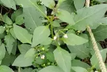龙葵,茄科茄属一年生草本植物,茎近无毛或被微柔毛,叶互生,卵形或卵状椭圆形,叶常无毛;花小且下垂,花冠白色或淡紫色;浆果为球形,熟时黑紫色,有光泽;种子多数,卵形芝麻状,黄色;花期6-9月,…全部>>