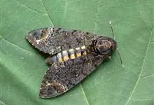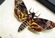 鬼脸天蛾,是鳞翅目天蛾科面形天蛾属动物。成虫翅展100~125毫米,体黑褐色;胸背有骷髅形斑纹;卵圆球形,直径约2毫米,淡黄绿色,表面光滑;老熟幼虫体长70~90毫米,蛹体长约56毫米;前翅为褐色,…全部>>