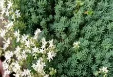 薄雪万年草别名矶小松,景天科景天属多年生草本植物,其细小的蓝绿色棒状叶片环绕生长于茎端,茎匍匐生长接触地面易着生不定根,整片生长郁郁葱葱犹如蓝色地毯,绿化效果极为秀美。原产西班牙,…全部>>