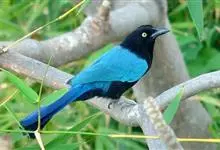 和平鸟中型鸟类,体长24~28厘米。眼红色,嘴、脚黑色。雄鸟从头顶到尾上覆羽等整个上体辉蓝色具紫色光泽,其余体羽黑色。雌鸟通体铜蓝色,仅飞羽黑褐色。常见的低地留鸟,…全部>>