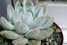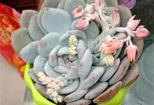 芙蓉雪莲是景天科拟石莲花属的植物。由于叶片表面覆盖着一层厚霜粉,通常呈现出白色;日照增多,温差增大后叶缘、叶尖会呈现出粉红色或橙红色。…全部>>