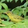 黑眉柳莺,小型鸟类,体长9-10厘米。上体橄榄绿色,头顶中央自额基至后颈有一条淡绿黄色中央冠纹极为显著,头顶两侧各有一条黑色侧冠纹,眉纹黄色,贯眼纹黑色。翅上有两道淡黄色翅斑,…全部>>