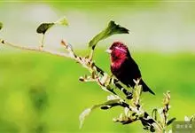 酒红朱雀小型鸟类,体长13~15厘米。雄鸟通体深红色,头部深朱红或棕红色,下背和腰玫瑰红色,眉纹粉红色而具丝绢光泽。两翅和尾黑褐或灰褐色、具暗红色狭缘,内侧两枚三级飞羽具淡粉红色先端。…全部>>