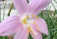 小韭兰学名韭菜莲又名风雨花、菖蒲莲、红玉帘和旱水仙,多年生草本,鳞茎卵球形,基生叶常数枚簇生,线形,扁平,花单生于花茎顶端,下有佛焰苞状总苞,花玫瑰红色或粉红色,蒴果近球形,种子黑色,花期夏秋。韭莲…全部>>