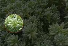 薄雪万年草别名矶小松,景天科景天属多年生草本植物,其细小的蓝绿色棒状叶片环绕生长于茎端,茎匍匐生长接触地面易着生不定根,整片生长郁郁葱葱犹如蓝色地毯,绿化效果极为秀美。原产西班牙,…全部>>