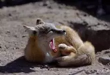 沙狐:体长50-60厘米,尾长25-35厘米,体重约2-3千克。比赤狐略小。是一种长腿,红灰色的狐狸。脸短而吻尖,耳大而尖,耳基宽阔。背部呈浅棕灰色或浅红褐色,底色为银色。下颏至胸腹部呈淡白色至黄色。…全部>>