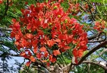 凤凰木 Raf.) ,别名火树、红花楹、凤凰花、火凤凰、金凤花、红楹,是豆科凤凰木属高大落叶乔木,树皮灰褐色,粗糙。二回偶数羽状复叶互生,矩圆形,两面均被柔毛。伞房式总状花序,花大,花瓣5枚,圆形,…全部>>