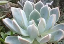 芙蓉雪莲是景天科拟石莲花属的植物。由于叶片表面覆盖着一层厚霜粉,通常呈现出白色;日照增多,温差增大后叶缘、叶尖会呈现出粉红色或橙红色。…全部>>