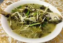 雪菜黄鱼汤,浙江宁波市传统的特色名菜,属于宁波十大名菜之一,此菜汤汁奶白鲜洁,鱼肉鲜嫩,雪菜鲜脆爽口。有补虚养身调理,贫血调理,健脾开胃调理的功效。全部>>