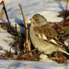 白斑翅雪雀:属典型的高原鸟类,共有7个亚种,体重30-34克,体长142-169毫米,较雪雀属中其他种体型稍大;雄鸟头灰,颏黑,翕和肩富于褐色;翼大部白色;除一对中央尾羽黑色外其余均为白色而具黑色羽端,…全部>>