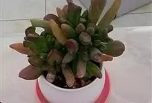 筒叶花月,是景天科青锁龙属的多年生草本植物。植株多分株,灌木状,茎较粗壮,圆柱形,表皮灰褐色;叶片肉质,互生,呈圆筒状,簇生于茎或分枝顶端,叶端呈斜截形,截面为椭圆形;花呈星状,淡白色;花期秋季。…全部>>